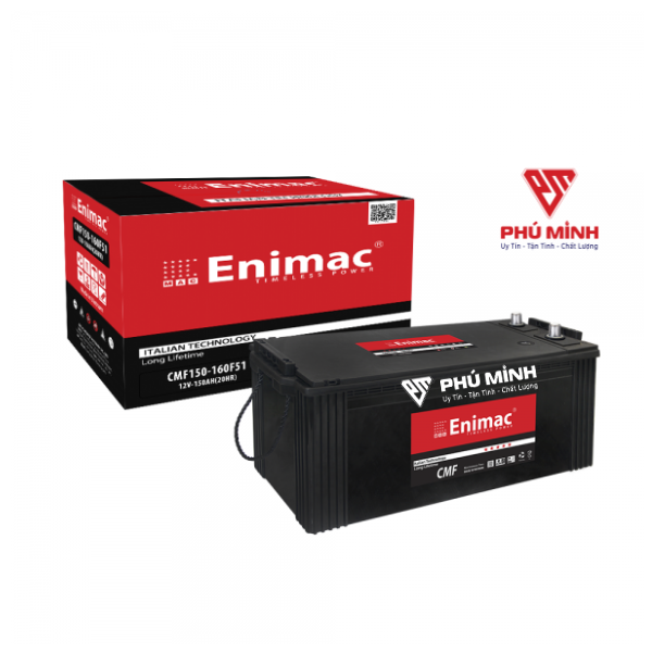 - ẮC QUY ENIMAC CMF 150 (150 Ah) là dòng ắc quy không cần bảo dưỡng ( không châm thêm điện dịch, nước cất) trong suốt thời gian sử dụng, thường dùng trong khởi động cho động cơ xe, động cơ máy phát điện, động cơ cho tàu thuyền…