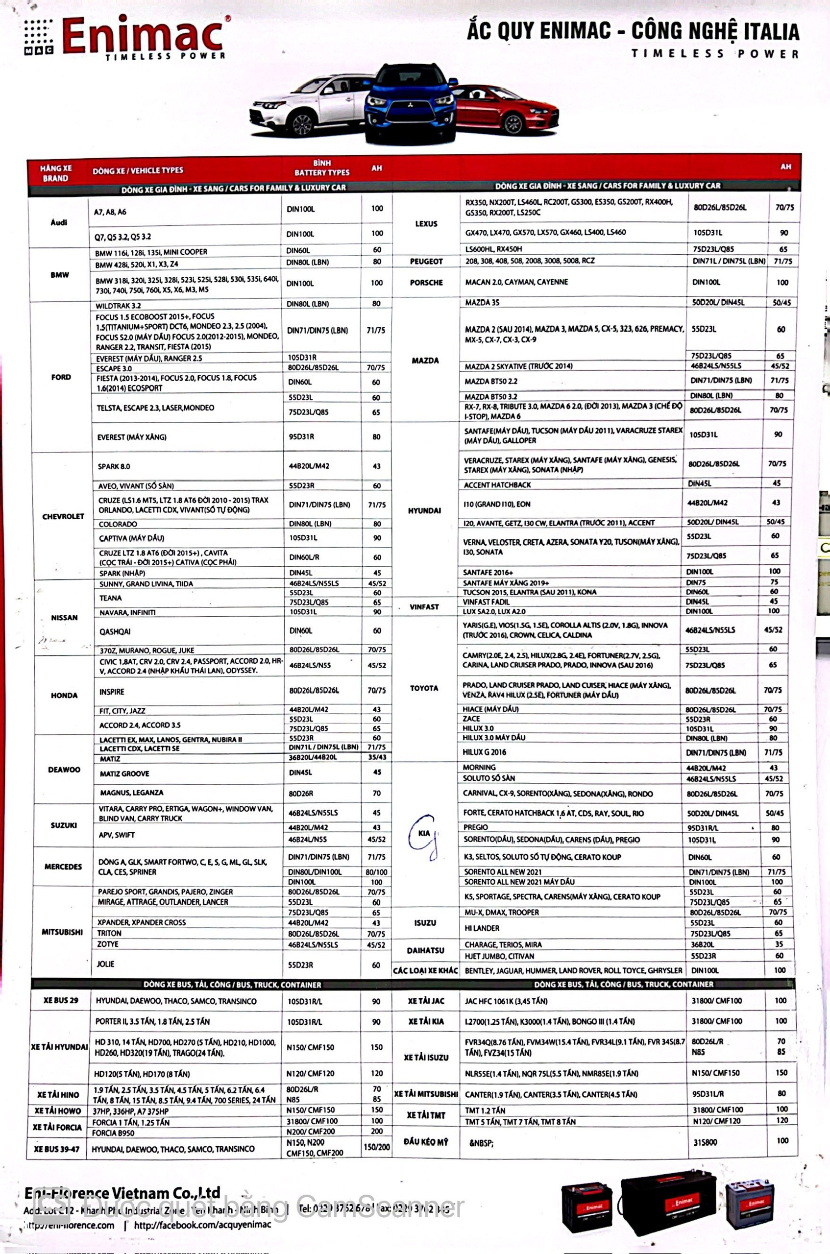 - ẮC QUY ENIMAC CMF 200 (200 Ah) được sản xuất trên dây chuyền công nghệ & tiêu chuẩn Ý (Italian technology & standard ), với nguồn nguyên vật liệu từ các nhà cung cấp uy tín trên thế giới như: Pháp, Italy, Mỹ, Úc, Hàn Quốc, Nhật Bản…và hệ thống cán kéo sườn hiện đại nhất tại Việt Nam.