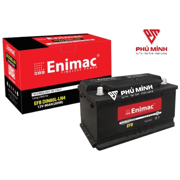 - ẮC QUY ENIMAC EFB DIN 80- LN4 (90AH) là dòng ắc quy không cần bảo dưỡng sản xuất theo công nghệ EFB DIN tiến tiến giúp cải thiện khả năng chịu tải, tuổi thọ và hiệu suất sạc để phù hợp với các dòng xe hiện đại có hệ thống Start-Stop, i-Stop (Idling Stop), Intelligent Stop & Go, Eco Start/Stop, Start-Stop Smartkey.. và phương tiện nhu cầu năng lượng cao