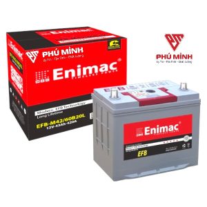 - Ắc Quy ENIMAC EFB M42-60B20L (43AH) là dòng ắc quy không cần bảo dưỡng sản xuất theo công nghệ EFB tiến tiến giúp cải thiện khả năng chịu tải, tuổi thọ và hiệu suất sạc để phù hợp với các dòng xe hiện đại có hệ thống Start-Stop, i-Stop (Idling Stop), Intelligent Stop & Go, Eco Start/Stop, Start-Stop Smartkey.. và phương tiện nhu cầu năng lượng cao