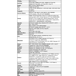 - Sản phẩm thích hợp sử dụng cho hộp số CVT trang bị trên xe hơi với thiết kế dây đai/ pulley hoặc xích truyền động/ pulley.